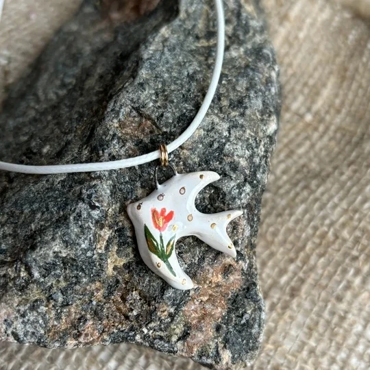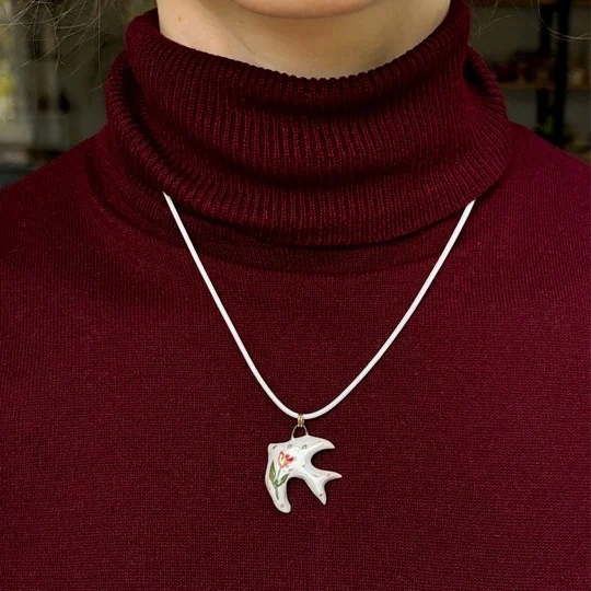 Подвеска «Ласточка» 🌷 Сделана из высококачественных испанских и немецких материалов, расписана вручную специальными профессиональными красками, покрыта глянцевой глазурью Шнурок сделан из искусственной кожи, длина — 45 см